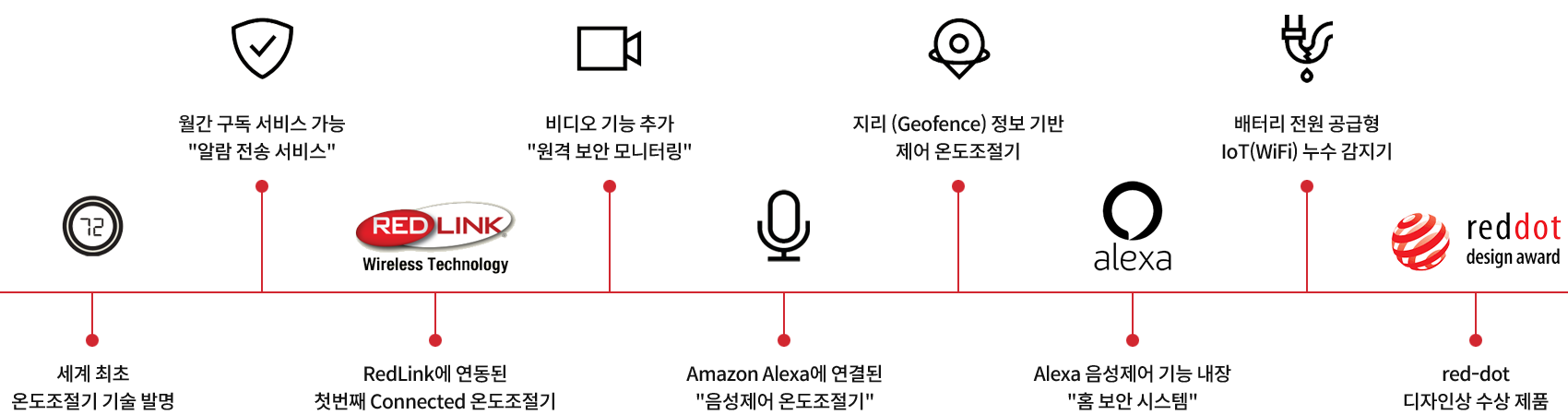 레지디오의 Connected 기술은 130년의 경험과 검증된 Honeywell Home Brand의 전문성을 바탕으로 구축되어 있으며, 오늘날에도 지속적으로 공급하고 있습니다.